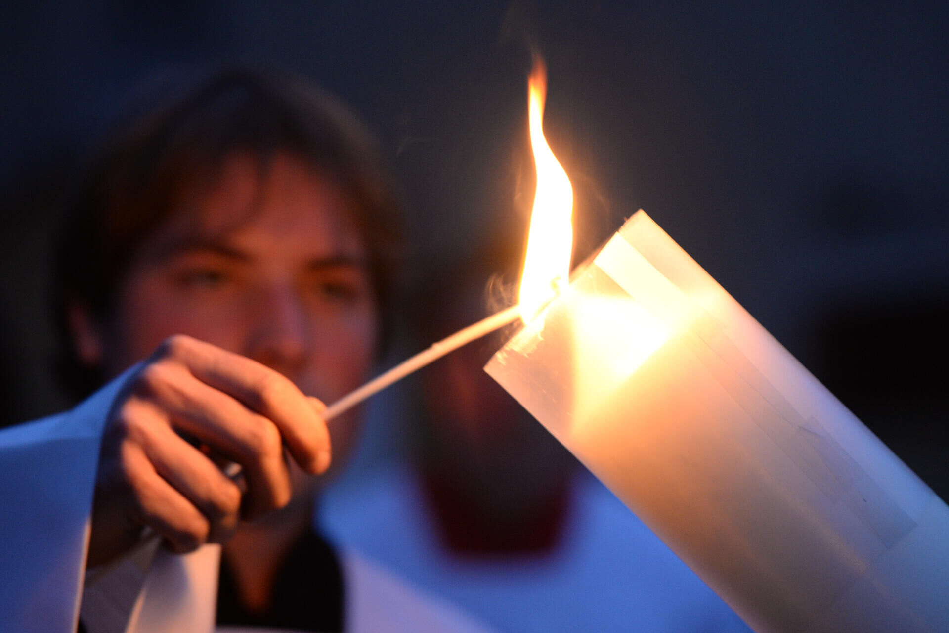 Feldkirchen: mit kleinem Weg vom Feuer im Garten zum Osterlicht.